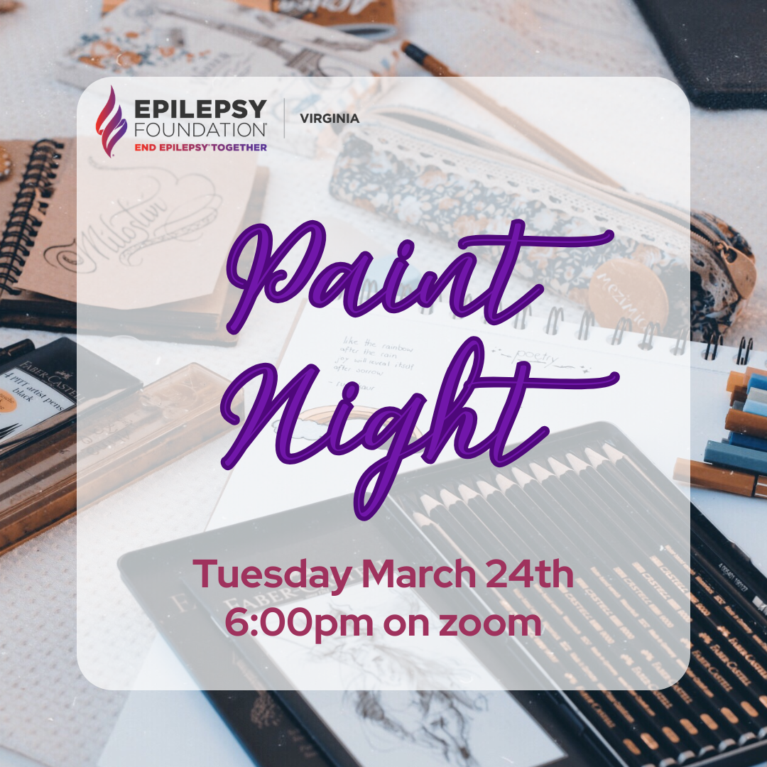 Paint Nights are virtual gatherings where epilepsy heroes can meet over Zoom and create their own painting of a theme or subject selected by the Paint Night leader. Participants use their own materials and supplies and work at their own pace.