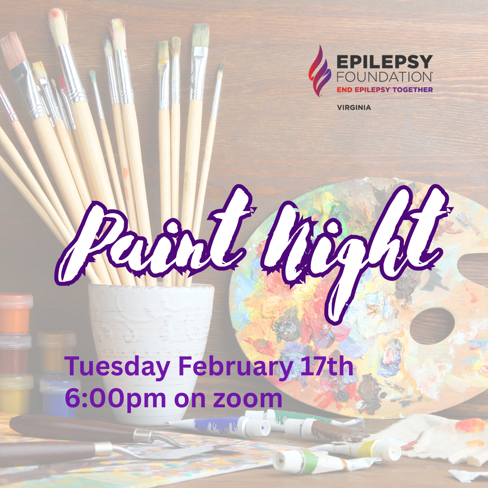 Paint Nights are virtual gatherings where epilepsy heroes can meet over Zoom and create their own painting of a theme or subject selected by the Paint Night leader. Participants use their own materials and supplies and work at their own pace.